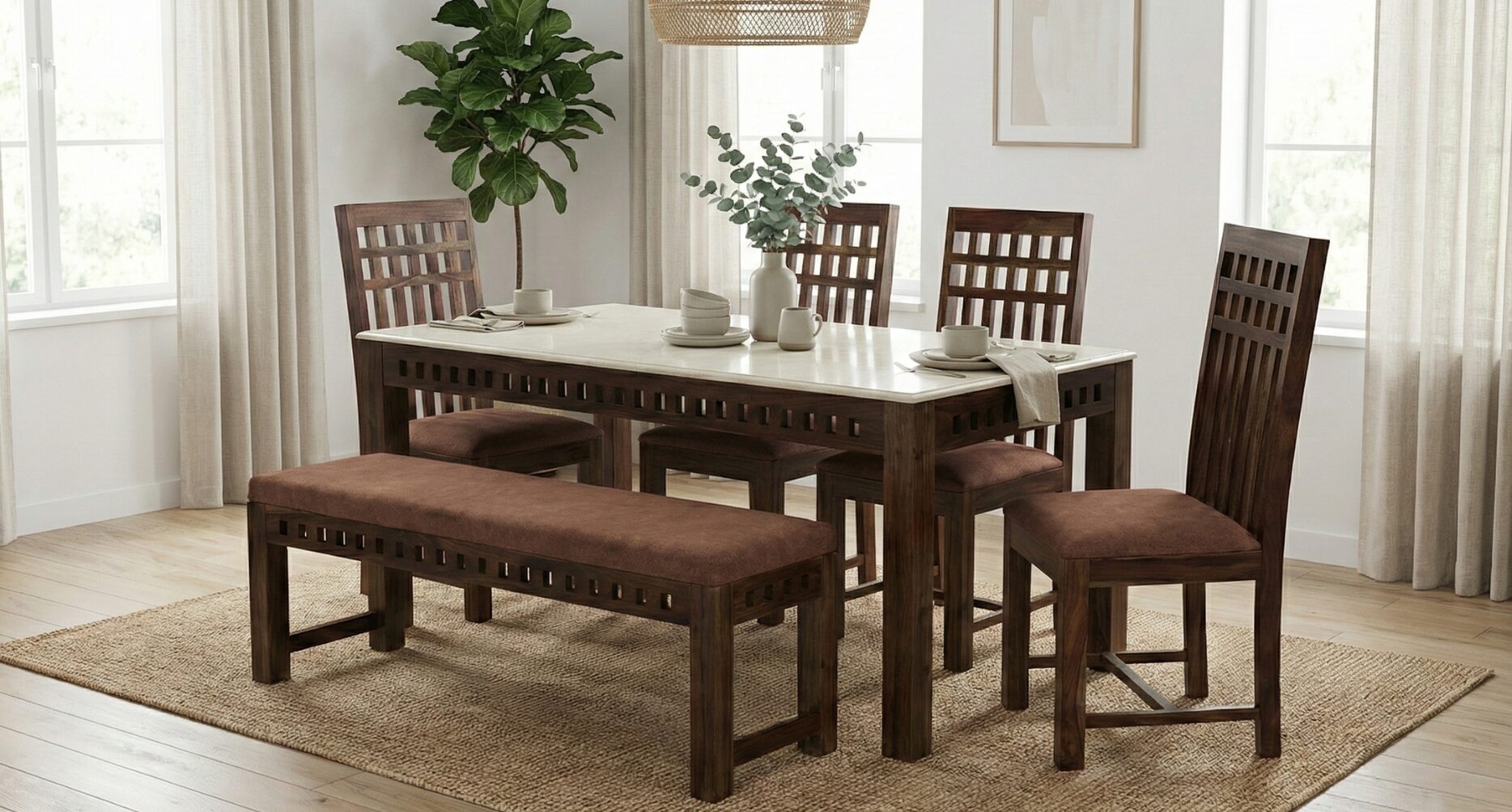 - Product Name: 1+4 DINING SET WITH BENCH ( SHEESHAM WOOD)