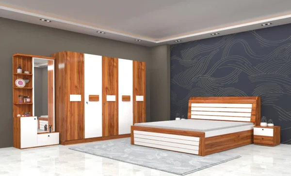 - A contemporary king-size bed with a premium headboard and robust frame.