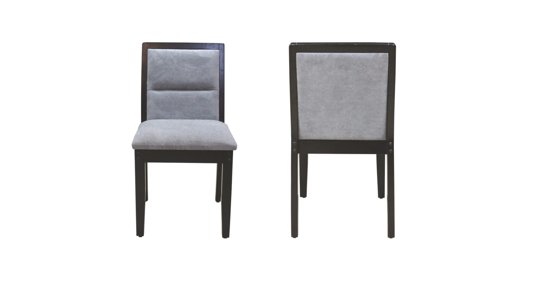 The spacious square table provides ample room for family meals, while the four upholstered chairs offer excellent comfort with soft cushioning and supportive backrests. The sleek dark wood finish combined with the elegant fabric upholstery creates a refined dining experience suitable for modern as well as classic interiors.